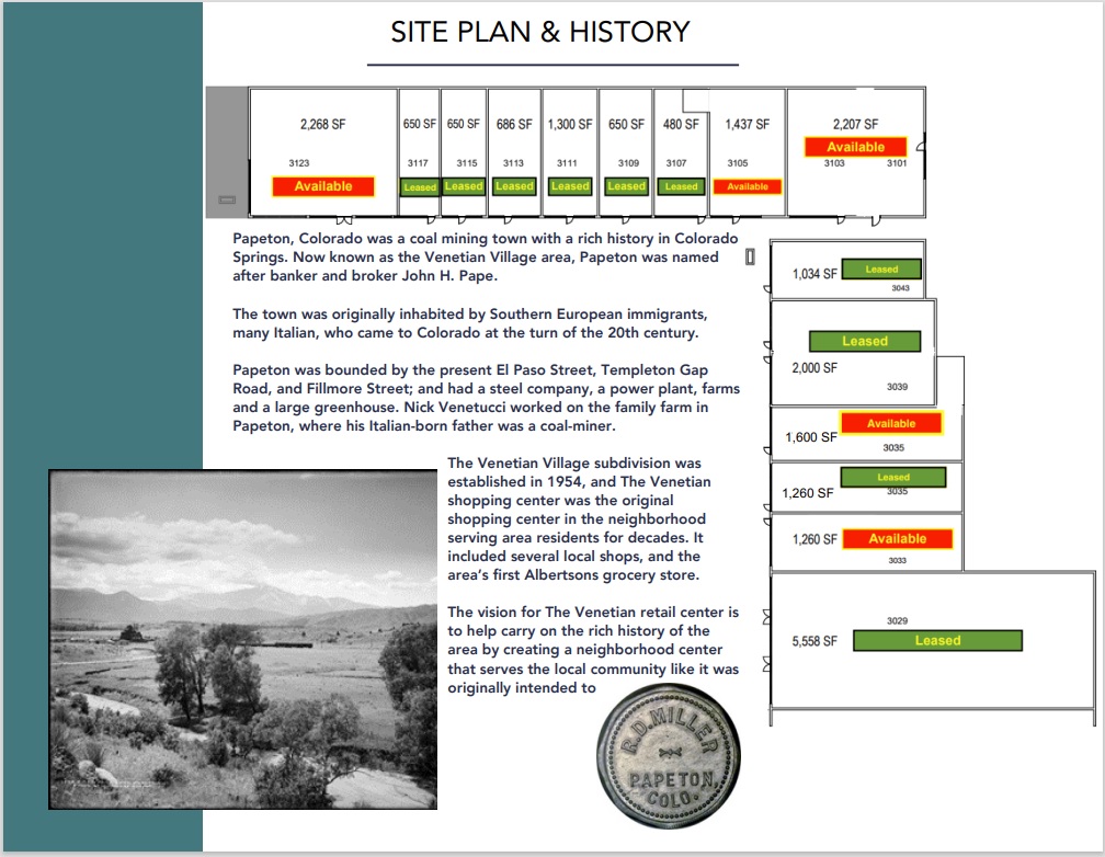 If you’re looking for a space for your specialty retail shop, look no further than Venetian Village in Colorado Springs. It’s the perfect location for your clothing boutique, bookstore, furniture store, shoe store, jewelry store or floral shop. Your specialty store needs a special space!